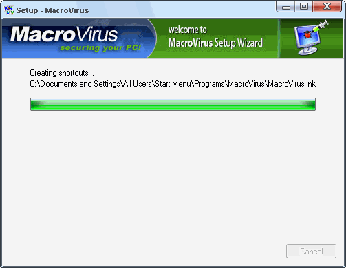 Det fanns ett falskt anti-spionprogram med namnet ”Macro Virus”. Det utvecklades för att vilseleda användare till att tro att deras datorer hade blivit infekterade. Dessutom hävdade programmet att testversionen inte kunde bli av med infektioner, med andra ord behövde man betala pengar för den ”fulla” versionen. Den enda sanningen var att ”Macro Virus” var det enda problemet i datorn som behövde elimineras. Skadeprogram gör allt de kan för att bedra användare, fall inte för dess blufftåg och vilseledande krav. Ta bort bedrägeriprogrammet ”Macro Virus” istället om du finner det.